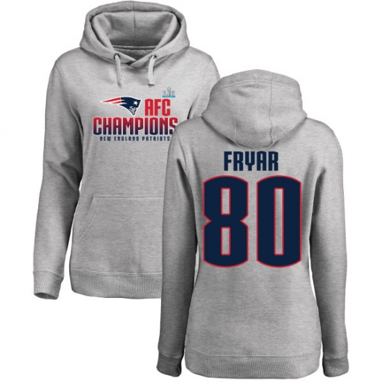>Women's Nike New England Patriots #80 Irving Fryar Heather Gray 2017 AFC Champions Pullover Hoodie