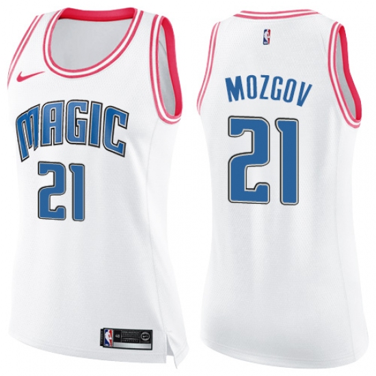 Women's Nike Orlando Magic #21 Timofey Mozgov Swingman White Pink Fashion NBA Jersey