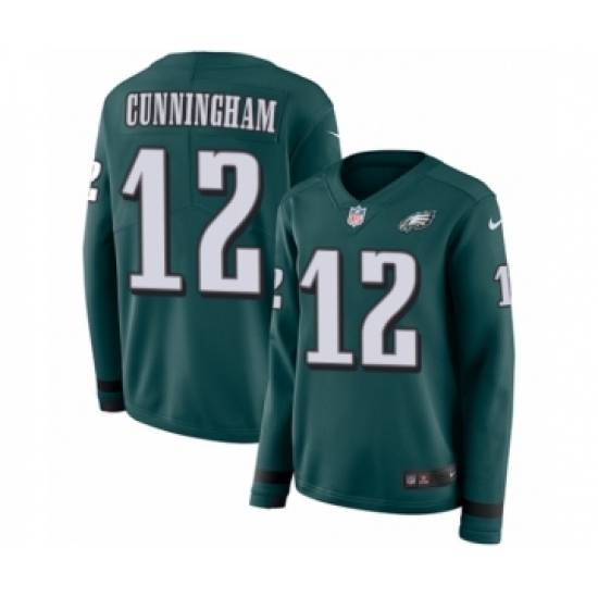 >Women's Nike Philadelphia Eagles #12 Randall Cunningham Limited Green Therma Long Sleeve NFL Jersey