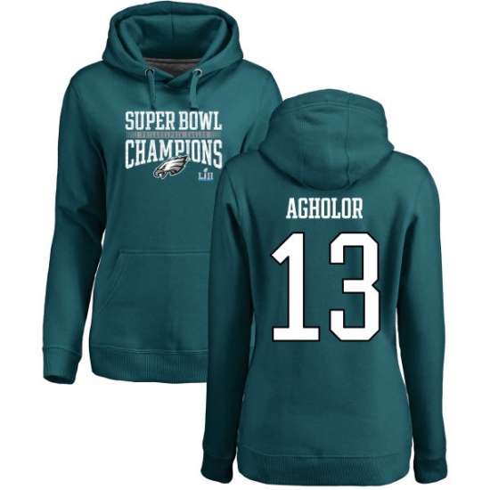 >Women's Nike Philadelphia Eagles #13 Nelson Agholor Green Super Bowl LII Champions Pullover Hoodie