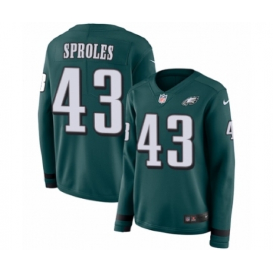 >Women's Nike Philadelphia Eagles #43 Darren Sproles Limited Green Therma Long Sleeve NFL Jersey
