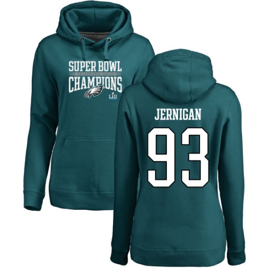 Women's Nike Philadelphia Eagles #93 Timmy Jernigan Green Super Bowl LII Champions Pullover Hoodie