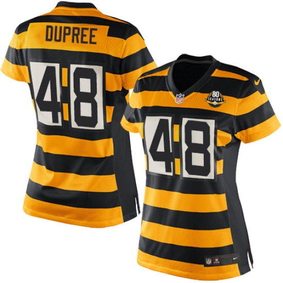 Women's Nike Pittsburgh Steelers #48 Bud Dupree Elite Yellow/Black Alternate 80TH Anniversary Throwback NFL Jersey