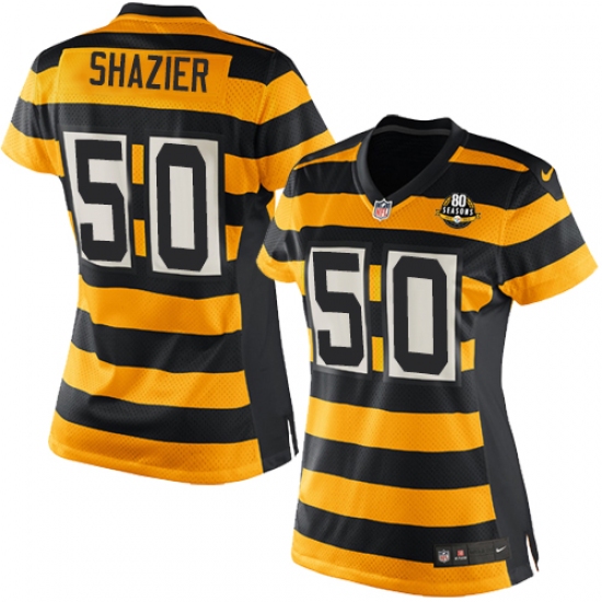 Home>NFL>Pittsburgh Steelers>Ryan Shazier>Women's Nike Pittsburgh Steelers #50 Ryan Shazier Game Yellow/Black Alternate 80TH Anniversary Throwback NFL Jersey