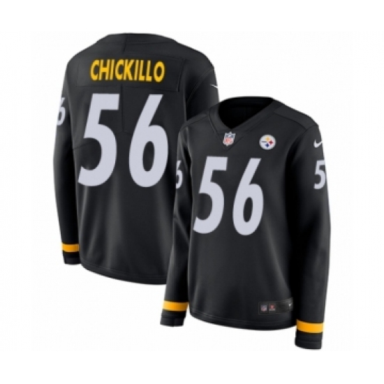 >Women's Nike Pittsburgh Steelers #56 Anthony Chickillo Limited Black Therma Long Sleeve NFL Jersey