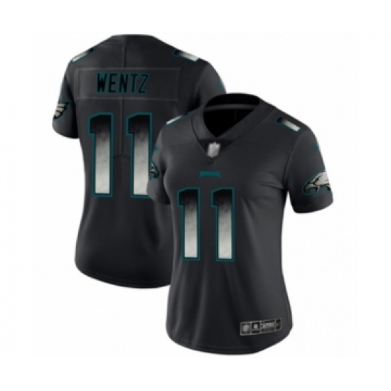 >Women's Philadelphia Eagles #11 Carson Wentz Limited Black Smoke Fashion Football Jersey