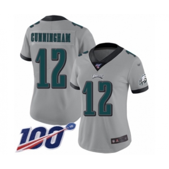 >Women's Philadelphia Eagles #12 Randall Cunningham Limited Silver Inverted Legend 100th Season Football Jersey