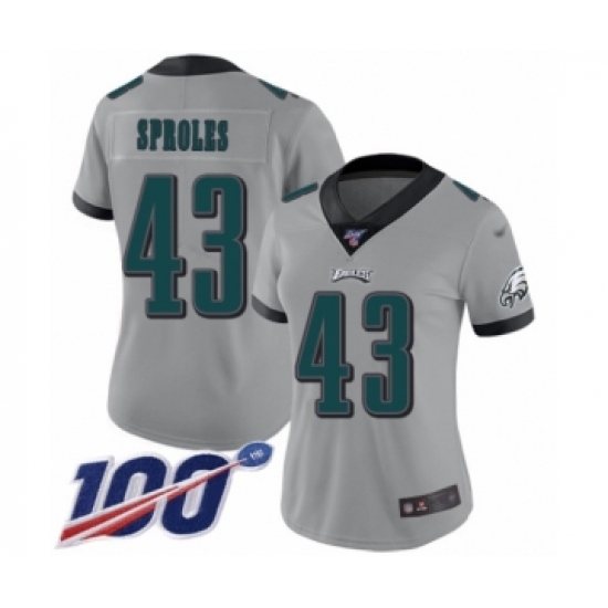 >Women's Philadelphia Eagles #43 Darren Sproles Limited Silver Inverted Legend 100th Season Football Jersey
