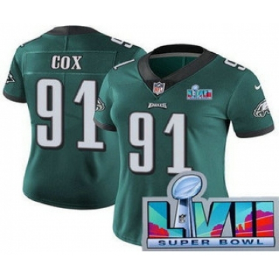 Women's Philadelphia Eagles #91 Fletcher Cox Limited Green Super Bowl LVII Vapor Jersey