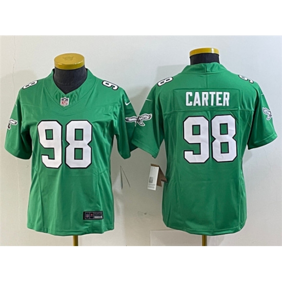 >Women's Philadelphia Eagles #98 Jalen Carter Green 2023 F.U.S.E. Stitched Football Jersey