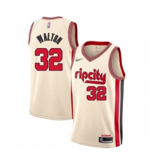 >Women's Portland Trail Blazers #32 Bill Walton Swingman Cream Basketball Jersey - 2019 20 City Edition