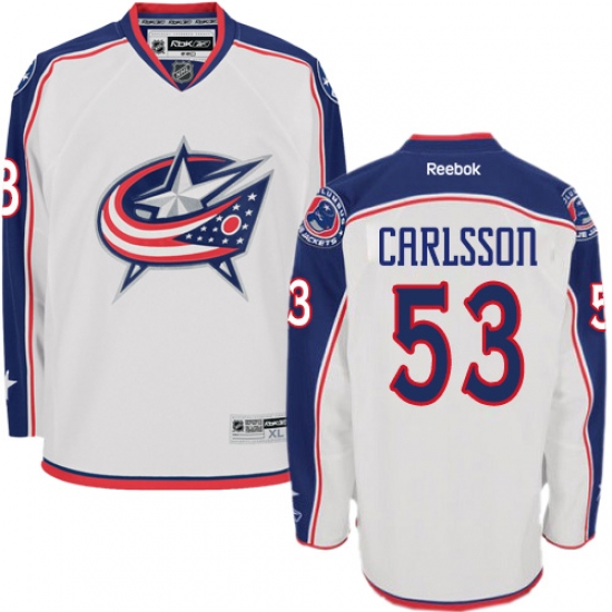 Women's Reebok Columbus Blue Jackets #53 Gabriel Carlsson Authentic White Away NHL Jersey