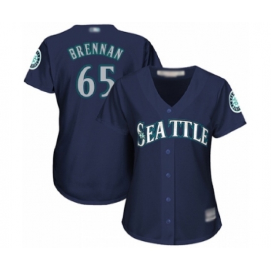 Women's Seattle Mariners #65 Brandon Brennan Authentic Navy Blue Alternate 2 Cool Base Baseball Player Jersey
