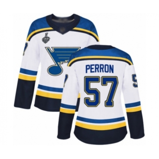 Women's St. Louis Blues #57 David Perron Authentic White Away 2019 Stanley Cup Final Bound Hockey Jersey