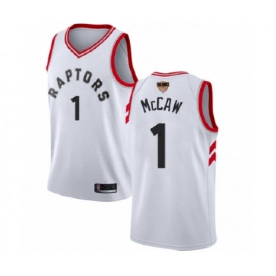 Men's Toronto Raptors #1 Patrick McCaw Swingman White 2019 Basketball Finals Champions Jersey - Association Edition