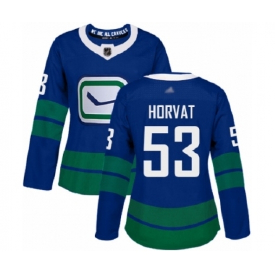 >Women's Vancouver Canucks #53 Bo Horvat Authentic Royal Blue Alternate Hockey Jersey