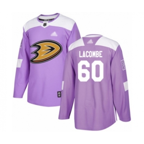 Men's Anaheim Ducks #60 Jackson Lacombe Authentic Purple Fights Cancer Practice Hockey Jersey
