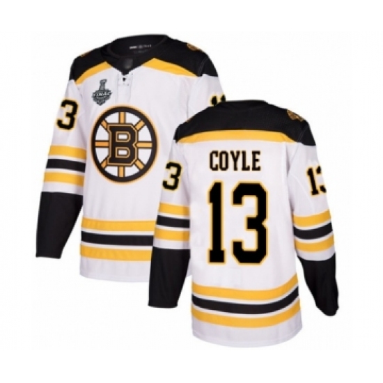 Men's Boston Bruins #13 Charlie Coyle Authentic White Away 2019 Stanley Cup Final Bound Hockey Jersey