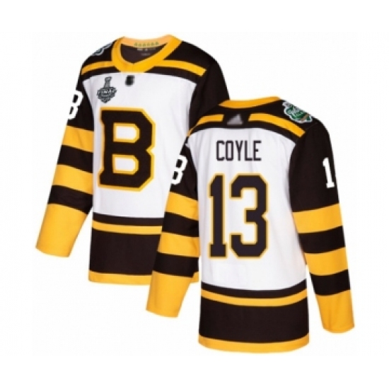 >Youth Boston Bruins #13 Charlie Coyle Authentic White Winter Classic 2019 Stanley Cup Final Bound Hockey Jersey