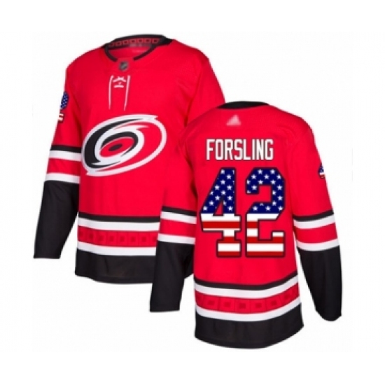 Men's Carolina Hurricanes #42 Gustav Forsling Authentic Red USA Flag Fashion Hockey Jersey