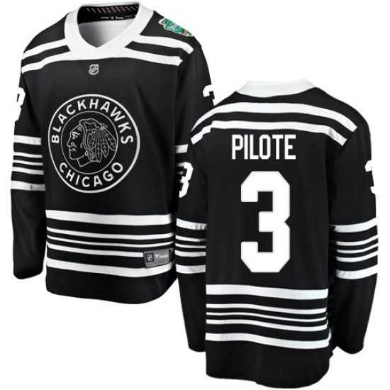 >Youth Chicago Blackhawks #3 Pierre Pilote Black 2019 Winter Classic Fanatics Branded Breakaway NHL Jersey