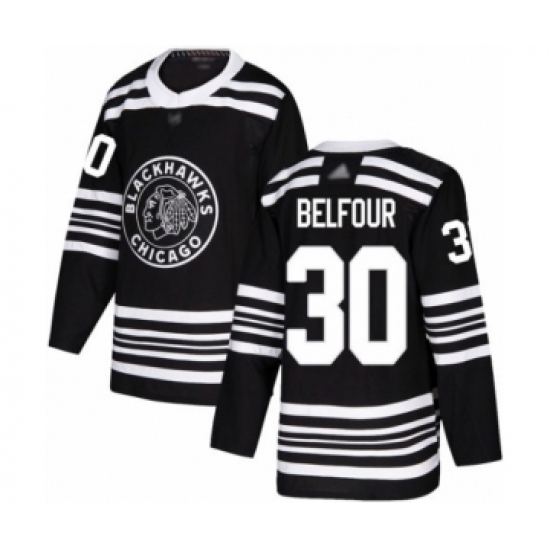 Men's Adidas Chicago Blackhawks #30 ED Belfour Authentic Black 2019 Winter Classic NHL Jersey