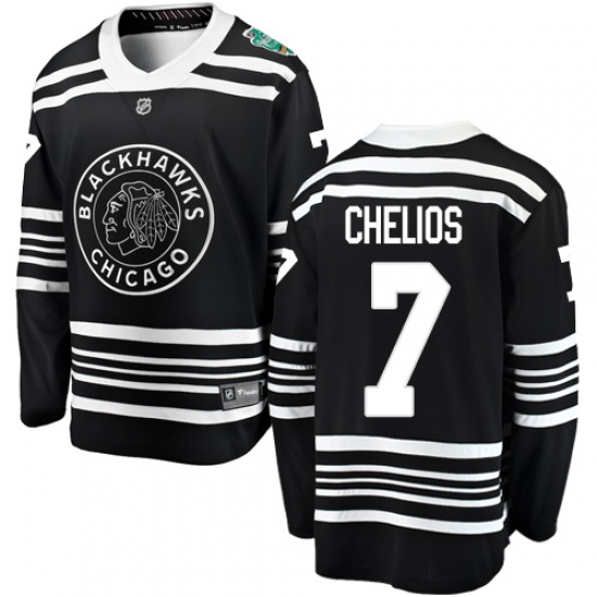 >Youth Chicago Blackhawks #7 Chris Chelios Black 2019 Winter Classic Fanatics Branded Breakaway NHL Jersey
