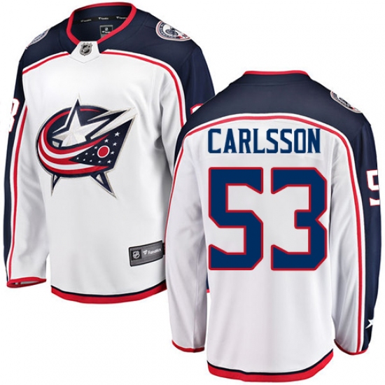 Home>NHL>Columbus Blue Jackets>Gabriel Carlsson>Youth Columbus Blue Jackets #53 Gabriel Carlsson Fanatics Branded White Away Breakaway NHL Jersey