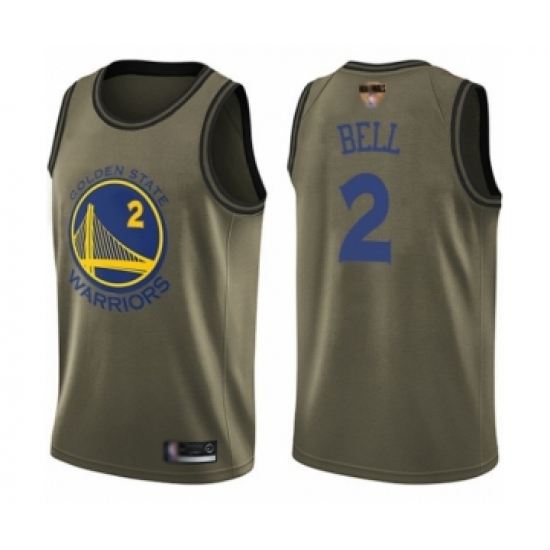 Youth Golden State Warriors #2 Jordan Bell Swingman Green Salute to Service 2019 Basketball Finals Bound Basketball Jersey