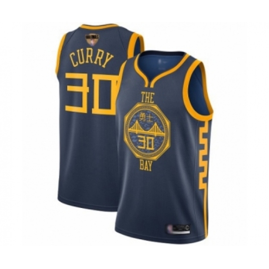 Youth Golden State Warriors #30 Stephen Curry Swingman Navy Blue Basketball 2019 Basketball Finals Bound Jersey - City Edition