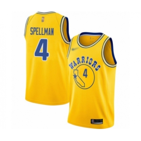 >Youth Golden State Warriors #4 Omari Spellman Swingman Gold Hardwood Classics Basketball Jersey
