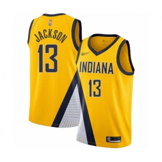 Men's Nike Indiana Pacers #13 Mark Jackson Authentic Gold NBA Jersey Statement Edition