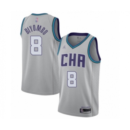 >Youth Jordan Charlotte Hornets #8 Bismack Biyombo Swingman Gray Basketball Jersey - 2019 20 City Edition