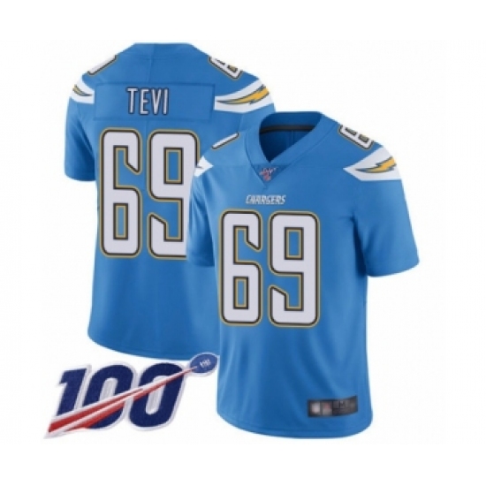 Men's Los Angeles Chargers #69 Sam Tevi Electric Blue Alternate Vapor Untouchable Limited Player 100th Season Football Jersey