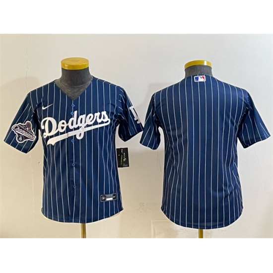 Youth Los Angeles Dodgers Blank Navy Pinstripe 2025 World Series Champions Cool Base Stitched Baseball Jersey