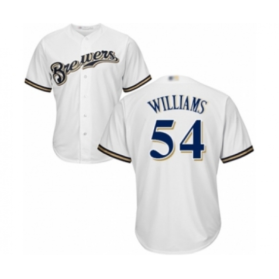 >Youth Milwaukee Brewers #54 Taylor Williams Authentic White Home Cool Base Baseball Player Jersey