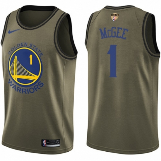 >Youth Nike Golden State Warriors #1 JaVale McGee Swingman Green Salute to Service 2018 NBA Finals Bound NBA Jersey