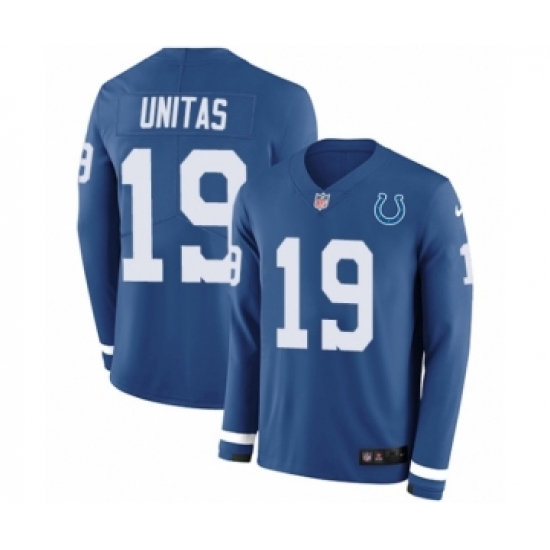 >Youth Nike Indianapolis Colts #19 Johnny Unitas Limited Blue Therma Long Sleeve NFL Jersey