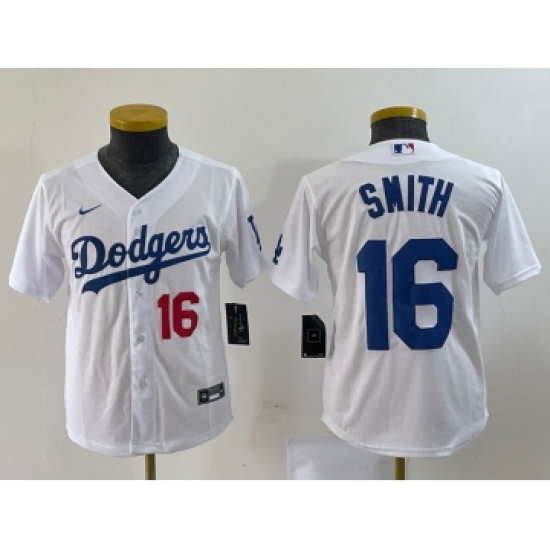 Youth Nike Los Angeles Dodgers #16 Will Smith Number White Stitched Cool Base Jersey
