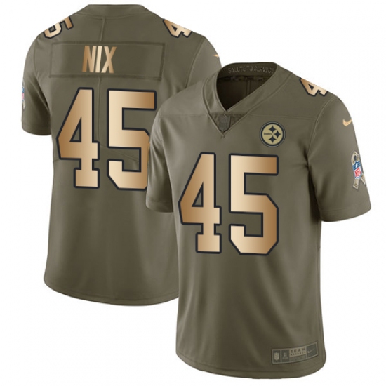 Youth Nike Pittsburgh Steelers #45 Roosevelt Nix Limited Olive/Gold 2017 Salute to Service NFL Jersey