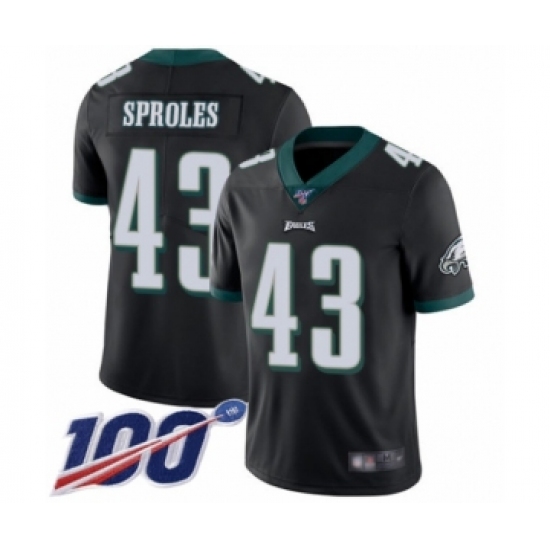 >Youth Philadelphia Eagles #43 Darren Sproles Black Alternate Vapor Untouchable Limited Player 100th Season Football Jersey