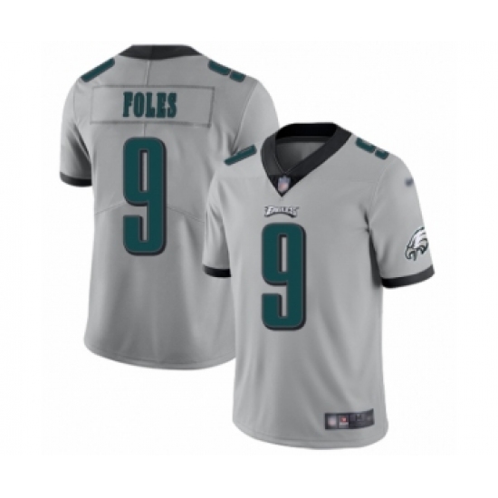 >Youth Philadelphia Eagles #9 Nick Foles Limited Silver Inverted Legend Football Jersey