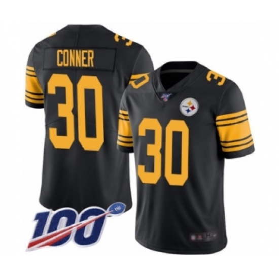 >Youth Pittsburgh Steelers #30 James Conner Limited Black Rush Vapor Untouchable 100th Season Football Jersey