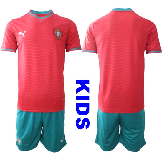 Youth Portugal Team #7 Ronaldo 2024-25 Red Home Soccer Jersey Suit