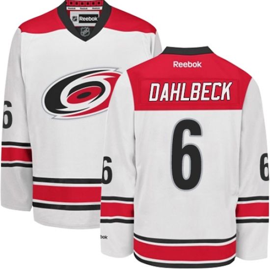 Home>NHL>Carolina Hurricanes>Klas Dahlbeck>Youth Reebok Carolina Hurricanes #6 Klas Dahlbeck Authentic White Away NHL Jersey