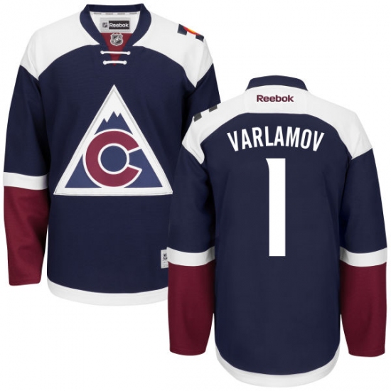 Home>NHL>Colorado Avalanche>Semyon Varlamov>Youth Reebok Colorado Avalanche #1 Semyon Varlamov Premier Blue Third NHL Jersey