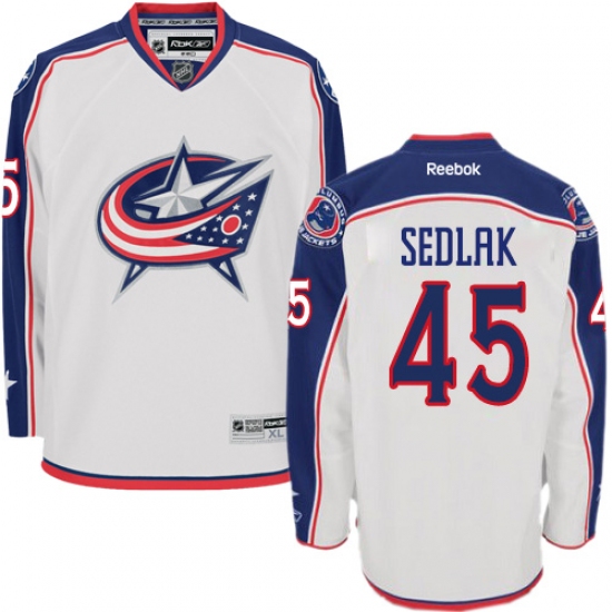 Home>NHL>Columbus Blue Jackets>Lukas Sedlak>Youth Reebok Columbus Blue Jackets #45 Lukas Sedlak Authentic White Away NHL Jersey