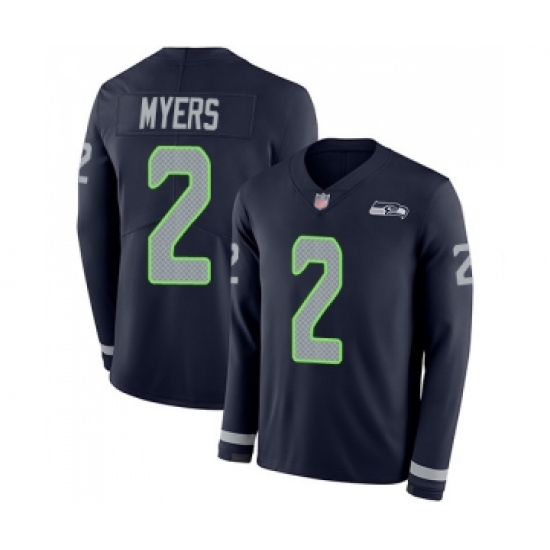 Men's Seattle Seahawks #2 Jason Myers Limited Navy Blue Therma Long Sleeve Football Jersey