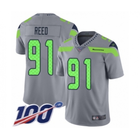 >Youth Seattle Seahawks #91 Jarran Reed Limited Silver Inverted Legend 100th Season Football Jersey