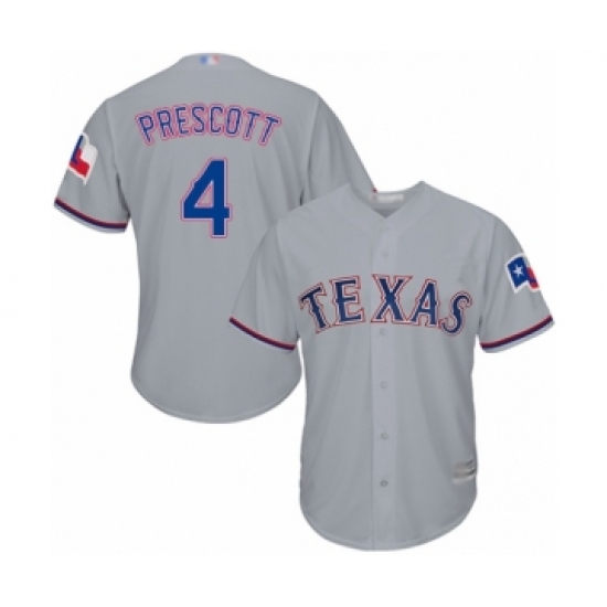 >Youth Texas Rangers #4 Dak Prescott Authentic Grey Road Cool Base Baseball Jersey